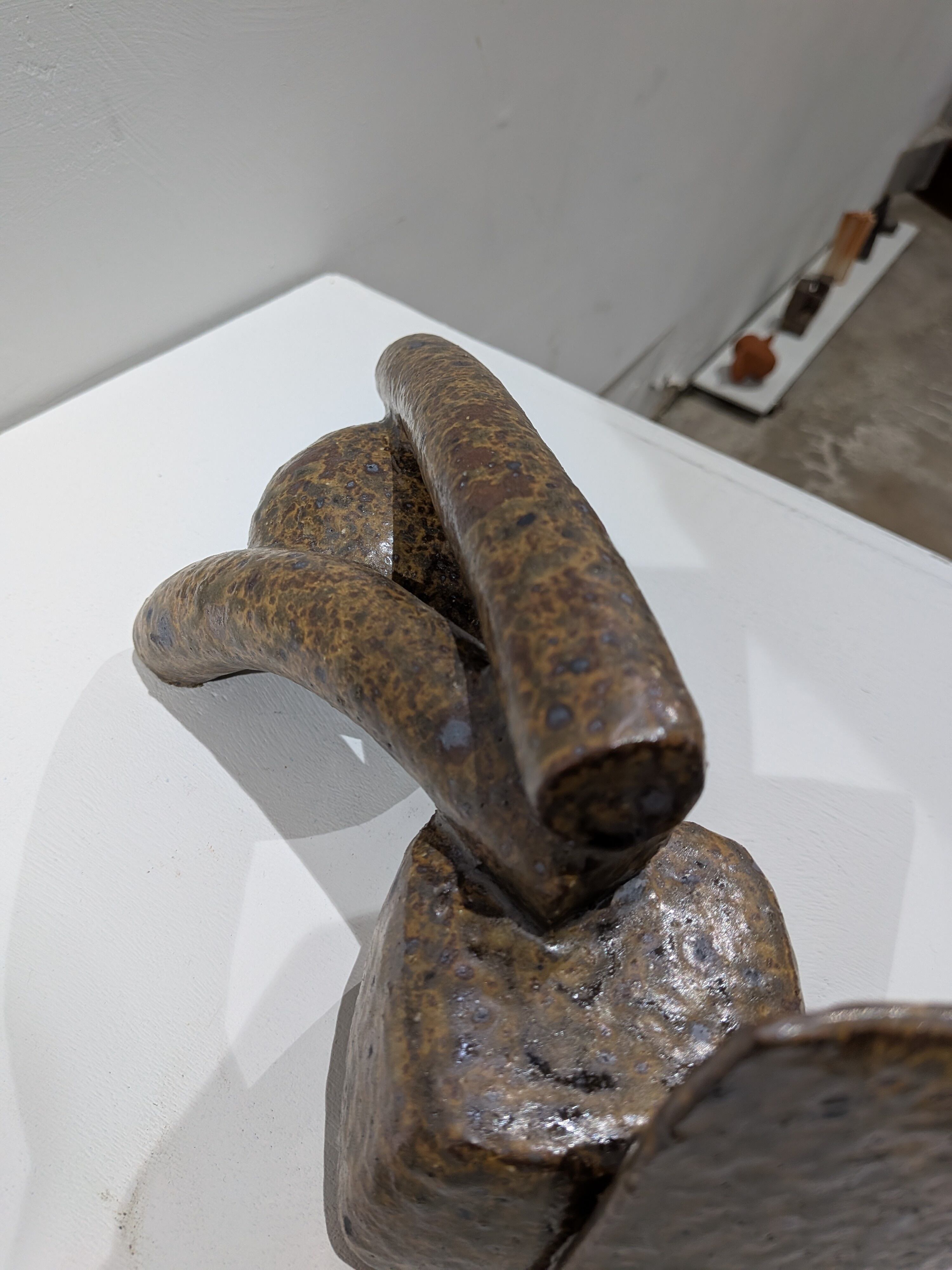 日常にふと現れる笑ってしまうものや、シュールなもの。そこに重さや軽さがかかると不条理が生まれてしまう事。自分の手に粘土が通過して出来上がる形を見ながら、そんな事を考えたりします。